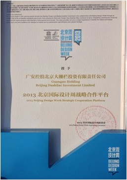 2013年10月24日下午,大黃鴨北京告別會暨“為愛而設(shè)計”公益活動頒獎典禮在頤和園舉行。設(shè)計周組委會向今年北京國際設(shè)計周期間表現(xiàn)卓越的機(jī)構(gòu)與設(shè)計師頒發(fā)獎項,廣安控股大柵欄投資有限責(zé)任公司榮獲北京國際設(shè)計周戰(zhàn)略合作平臺獎,大柵欄更新計劃獲得2013北京國際設(shè)計周最受媒體歡迎獎,大柵欄領(lǐng)航員計劃中微胡同、老張的年畫、一勺子糖、胡同廁所等諸多項目分別獲獎。