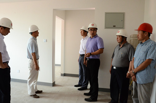 2014年7月10日下午,廣安控股公司總經(jīng)理張曉陽,資金財務(wù)中心總監(jiān)鄧清秀、人力行政總監(jiān)朱蘭新、總經(jīng)理助理王寅生、人力資源中心經(jīng)理劉媛媛、投資發(fā)展中心經(jīng)理王瑋、法務(wù)部經(jīng)理邵劍濤、內(nèi)審部經(jīng)理黃旺、辦公室副主任馮增輝一行9人,頂著炎炎烈日,來到西城區(qū)豐臺南苑項目現(xiàn)場進(jìn)行調(diào)研。