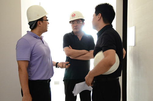 張總一行9人在燕廣公司副總經(jīng)理孫樹、工程總監(jiān)李強(qiáng)、工程管理部經(jīng)理張式鵬等人的陪同下,參觀了南苑項目的樣板間并就交房的標(biāo)準(zhǔn)進(jìn)行了詳細(xì)的詢問。隨后,副總孫樹向控股領(lǐng)導(dǎo)匯報了南苑項目的工程進(jìn)展情況;同時,銷售部副經(jīng)理李潔介紹了現(xiàn)階段項目的市場定價相關(guān)情況。