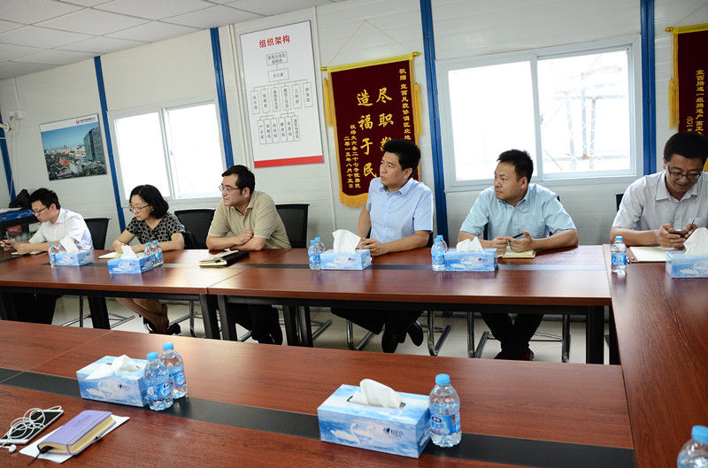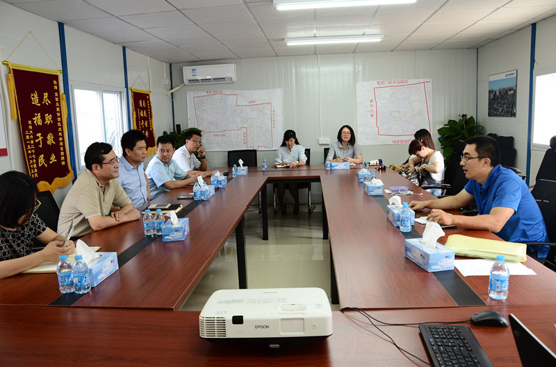 2015年8月18日,廣安控股公司總經(jīng)理張曉陽帶領(lǐng)控股公司各部門領(lǐng)導(dǎo),頂著炎炎烈日來到宣西北項(xiàng)目指揮部,聽取了項(xiàng)目騰退組組長孫樹同志對于項(xiàng)目具體情況的匯報(bào)及后期產(chǎn)業(yè)運(yùn)營的規(guī)劃。